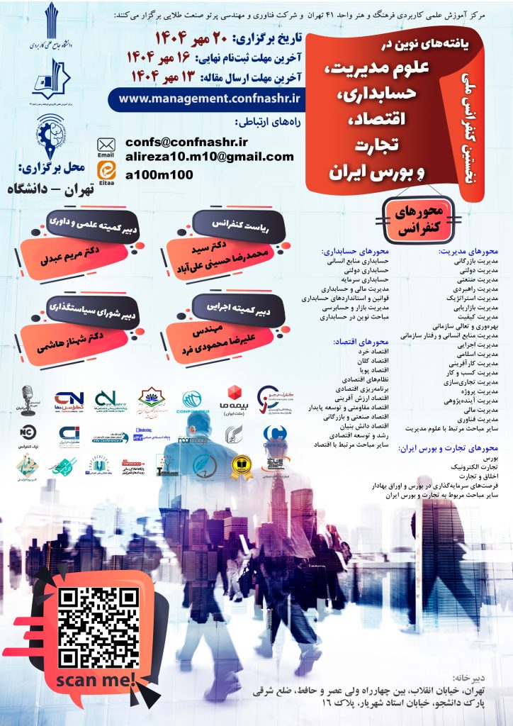 در شرایط پیچیده اقتصادی و تحولات سریع فناوری، نیاز به ارائه راهکارهای نوین در حوزههای مدیریتی، مالی و تجاری بیش از پیش احساس میشود. این کنفرانس با نگاهی آیندهنگرانه، به بررسی چالشها و فرصتهای پیشرو در عرصههای مختلف اقتصادی و کسبوکار میپردازد و درصدد است تا با ارائه پژوهشهای کاربردی، گامی مؤثر در جهت توسعه دانش و بهبود عملکرد سازمانی بردارد.
